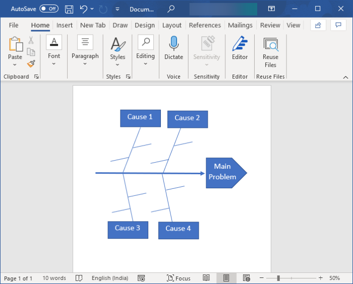 Jadi, ini adalah bagaimana Anda dapat membuat diagram tulang ikan atau diagram sebab akibat di Word menggunakan bentuk dasar.